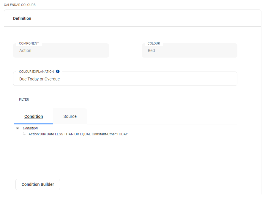 Using the Condition Builder, define the filter which will be used to allocate the current Color to those records, of the current Component, that match the filter criteria.